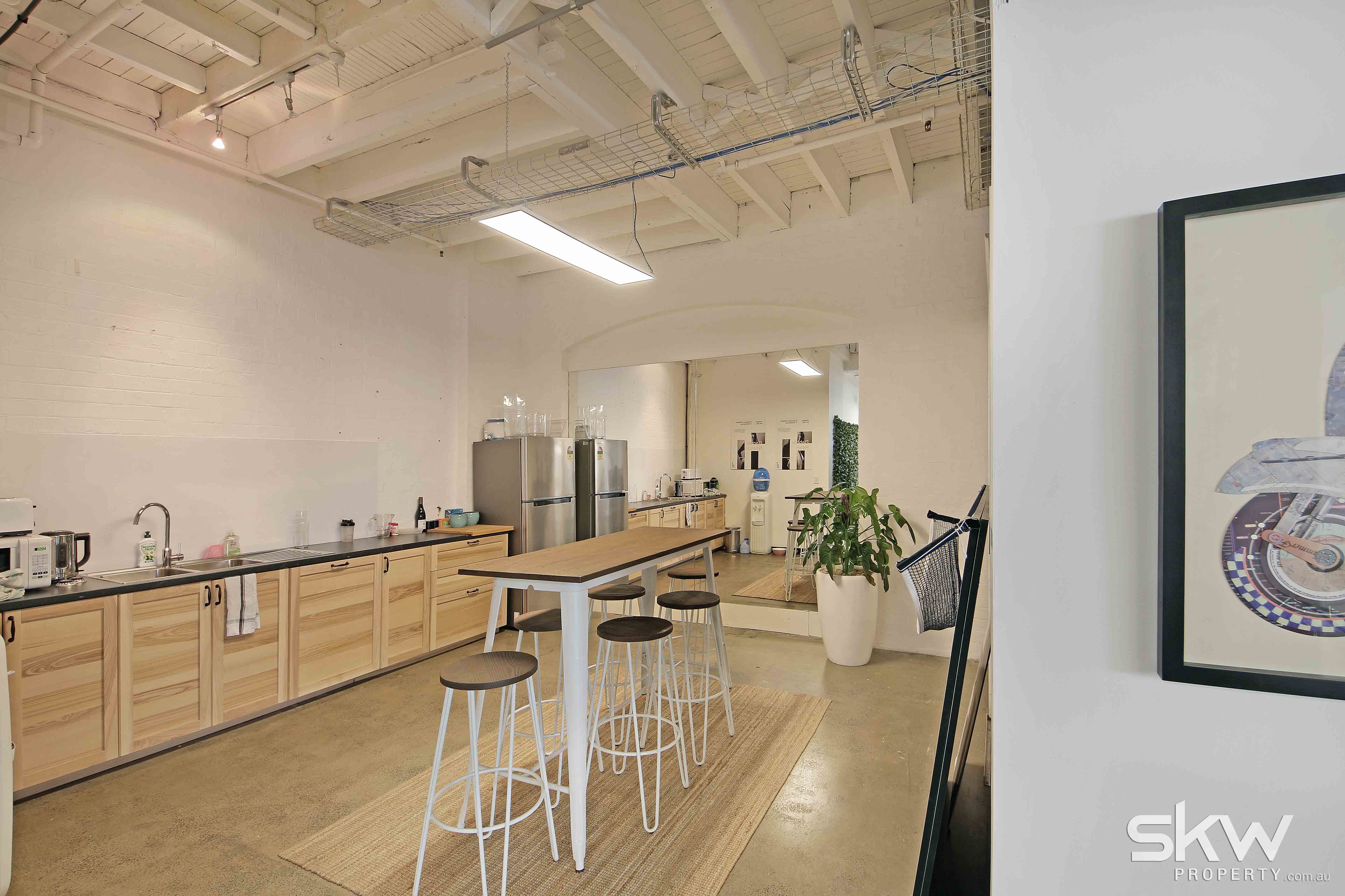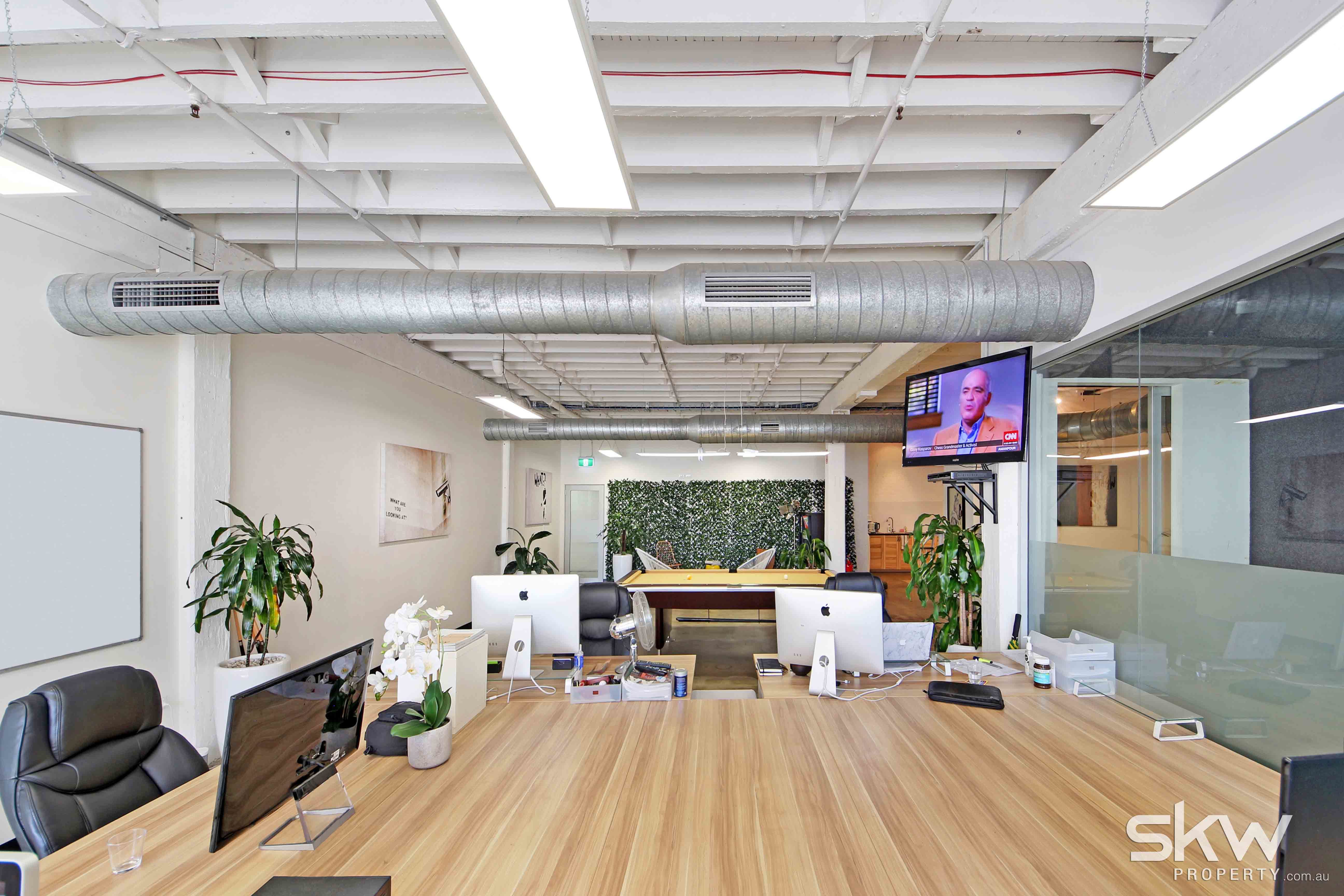 Set across 170 sqm, the suite includes glass boardroom, breakout area, and open plan kitchen. This versatile suite would suit an expanding business, with the high level of finish catering to creative or client-facing services.